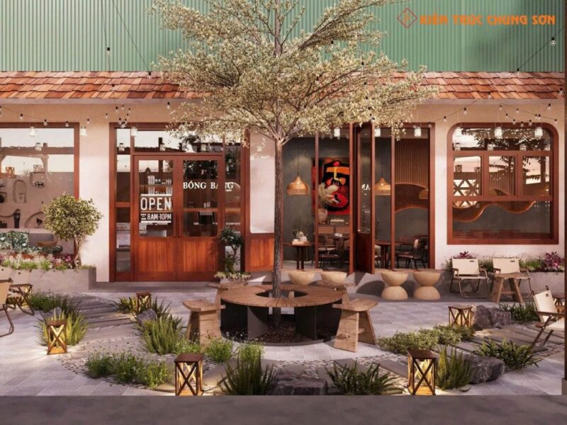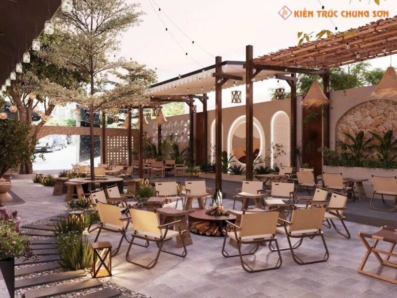 Thiết kế quán Cafe Sân Vườn – Chill Như Đi Camping Giữa Lòng Thành Phố